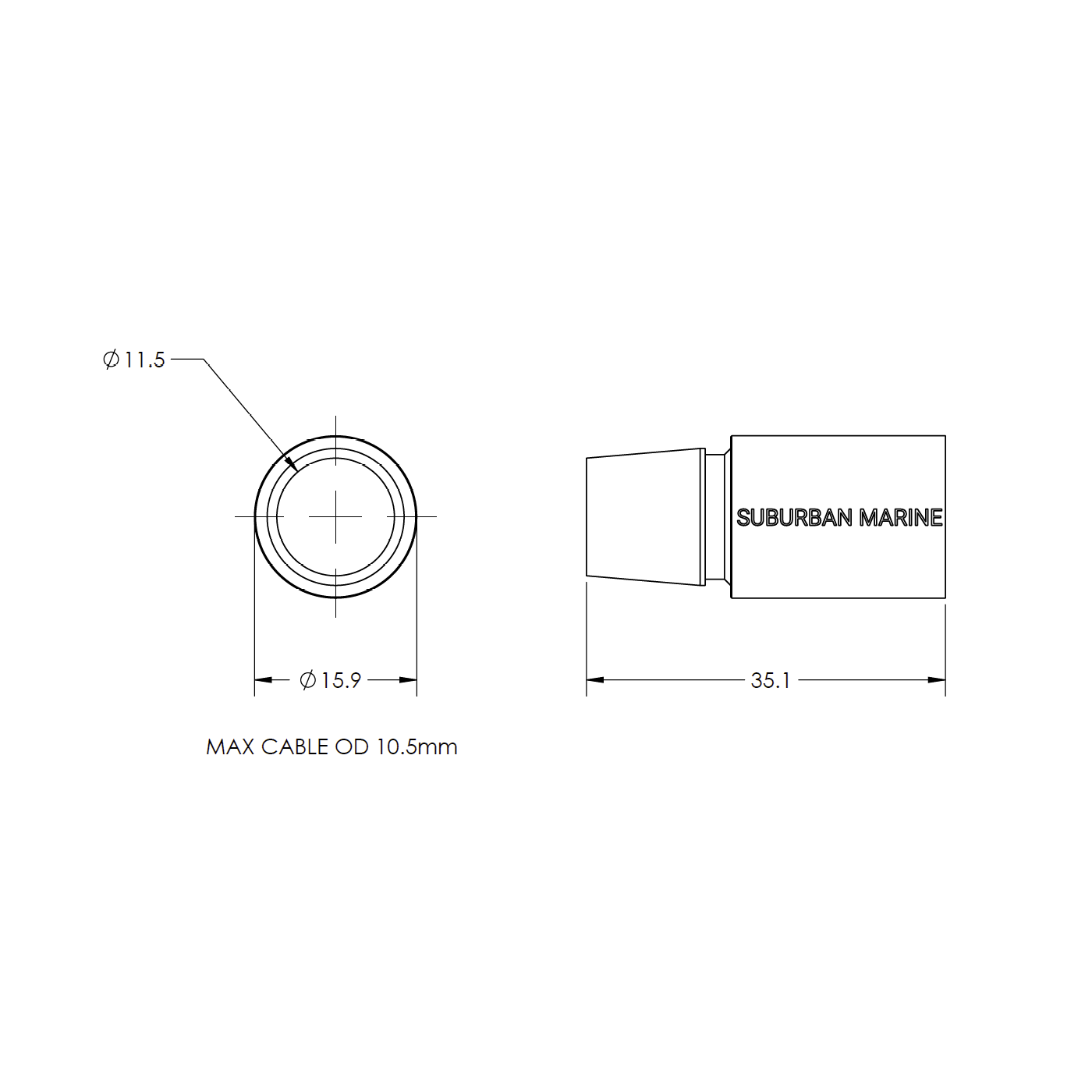 The Baromax inline backshell works with any Baromax connector to make inline cables up to 10.5mm in diameter. Pot with the Baromax epoxy to ensure a waterproof seal.